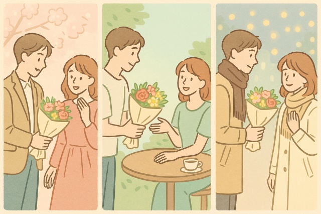 この章では、代表的なデートシーンごとに、相手の気持ちに自然に届くスマートな渡し方を紹介します。