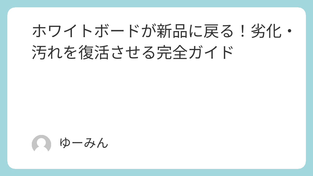 しかし安心してください。正しい手順とアイテムを使えば、ホワイトボードは新品のように復活させることができます。